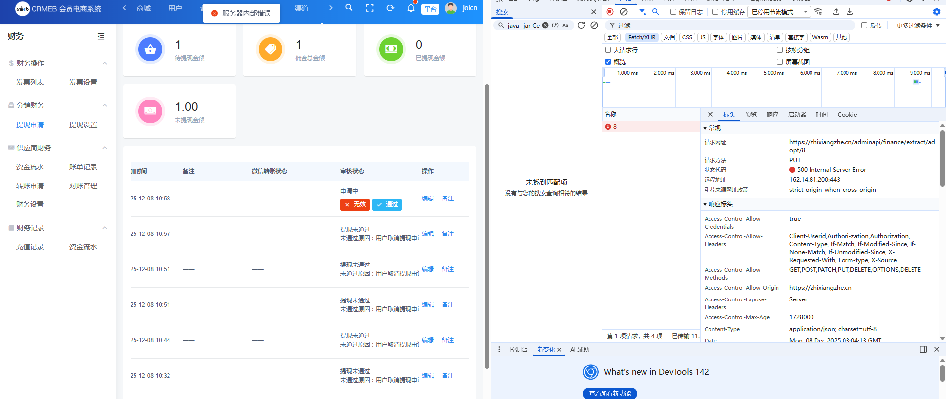pro版后台采集商品/审核提现均出现服务器内部错误