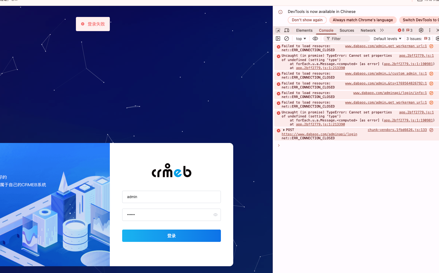 后台报错无法登录失败,帮忙看下什么问题吗后台报错无法登录失败,帮忙看下什么问题吗
