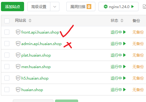 front.api就能成功运行,且网站也能打开,但admin.api就打不开网站。